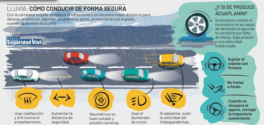 Conduir sota la pluja pot ser un repte, ja que l'asfalt moll redueix l'adherència dels pneumàtics i allarga les frenades. A més, les primeres gotes poden barrejar-se amb la brutícia de la carretera i fer-la encara més relliscosa. Per això, és fonamental prendre precaucions per garantir una conducció segura.